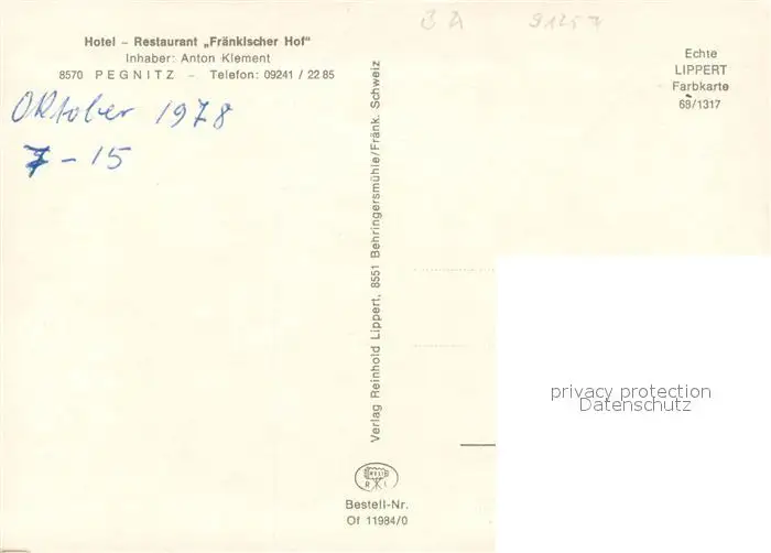 Pegnitz Hotel Restaurant Fraenkischer Hof Gastraeume Zimmer Pegnitz postalisch nicht gelaufen 1978 Erhaltung siehe scans [WerneD78] WernPID7