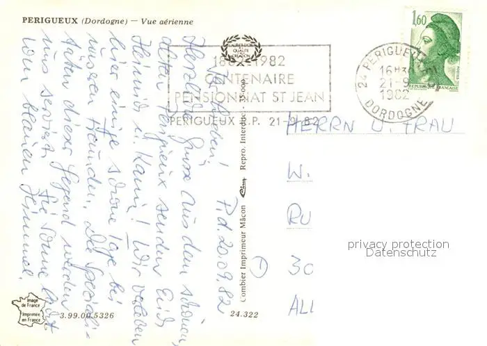 Perigueux Vue aérienne Perigueux postalisch gelaufen 1982 Erhaltung siehe scans [FriedD77] Frierer