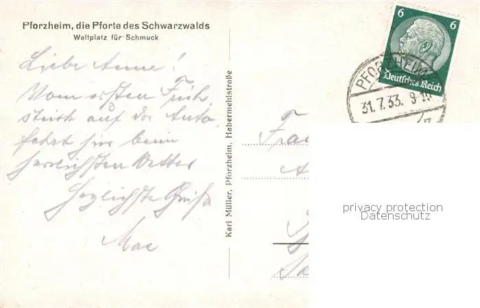 Pforzheim Rathaus Pforzheim postalisch gelaufen 1933 Erhaltung siehe scans [WerneD78] WernPID7