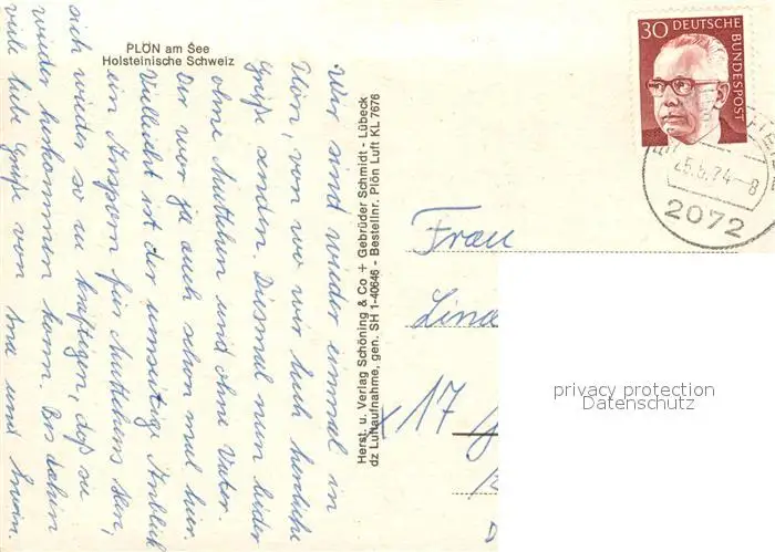 Ploen_See Naturpark Holsteinische Schweiz Fliegeraufnahme Ploen_See postalisch gelaufen 1974 Erhaltung siehe scans [FriedD77] Frierer