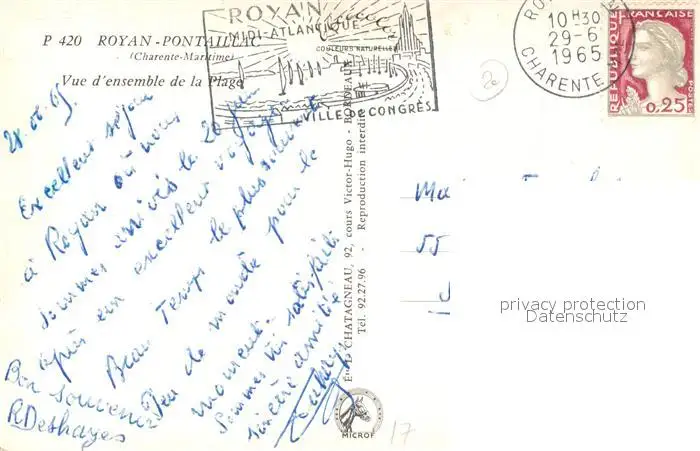 Pontaillac-Royan Vue d'ensemble de la Plage Pontaillac-Royan postalisch gelaufen 1965 Erhaltung siehe scans [FriedD77] Frierer