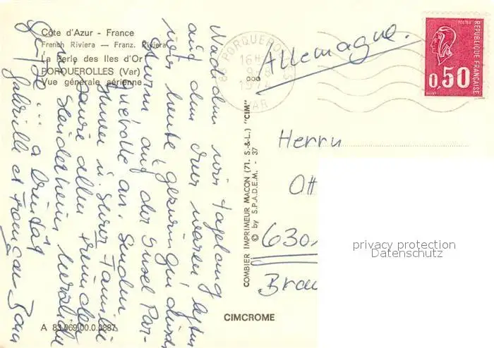 Porquerolles Vue generale aerienne Porquerolles postalisch gelaufen nach 1965 Erhaltung siehe scans [WerneD78] WernPID7