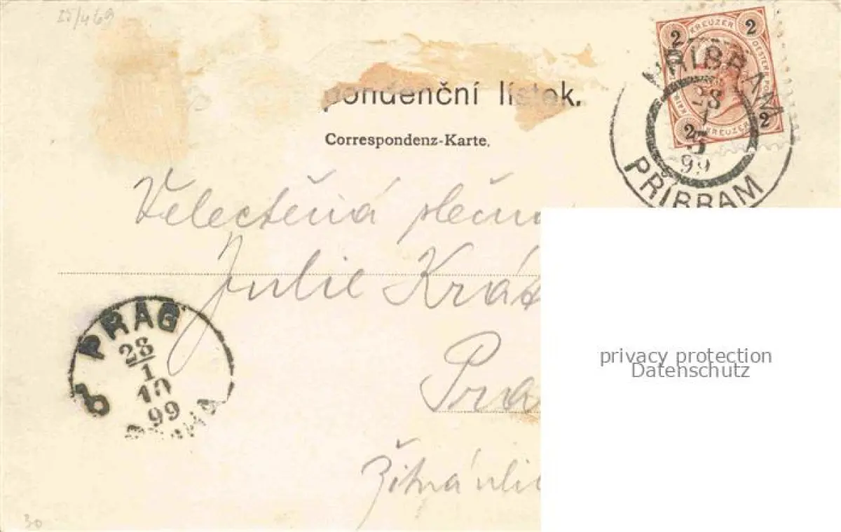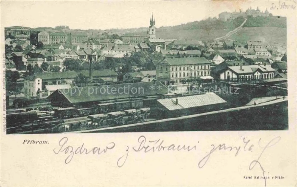 14117385 Pribram CZ Stadtpanorama Bahnhof postalisch gelaufen Erhaltung siehe scans [FriedD77] old postcard Frie Katcode 11520