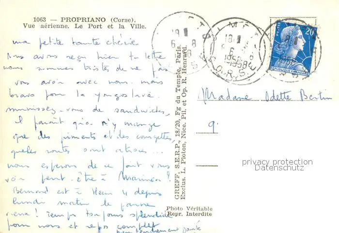 Propriano Vue aerienne Le Port et la Ville Propriano postalisch gelaufen 1958 Erhaltung siehe scans [WerneD78] WernPID7