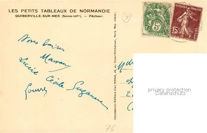 Quiberville Pècheur Collection Les petits tableaux de Normandi Quiberville postalisch gelaufen 1921-1965 Erhaltung siehe scans [FriedD77] Frierer