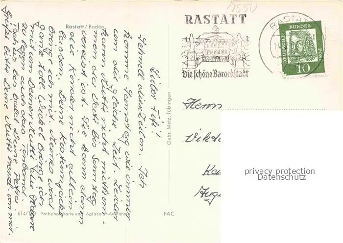alte Postkarte RASTATT Baden BW Fliegeraufnahme postalisch gelaufen Erhaltung siehe scans [WerneD78]
