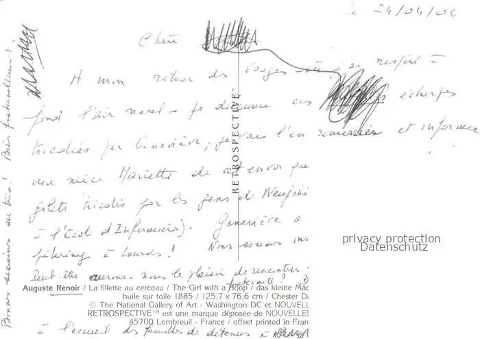RENOIR Pierre-Auguste (1841-1919) Kuenstlerkarte das kleine Maedchen mit Reifen postalisch nicht gelaufen Reprokarte Erhaltung siehe scans [IrynaD87]