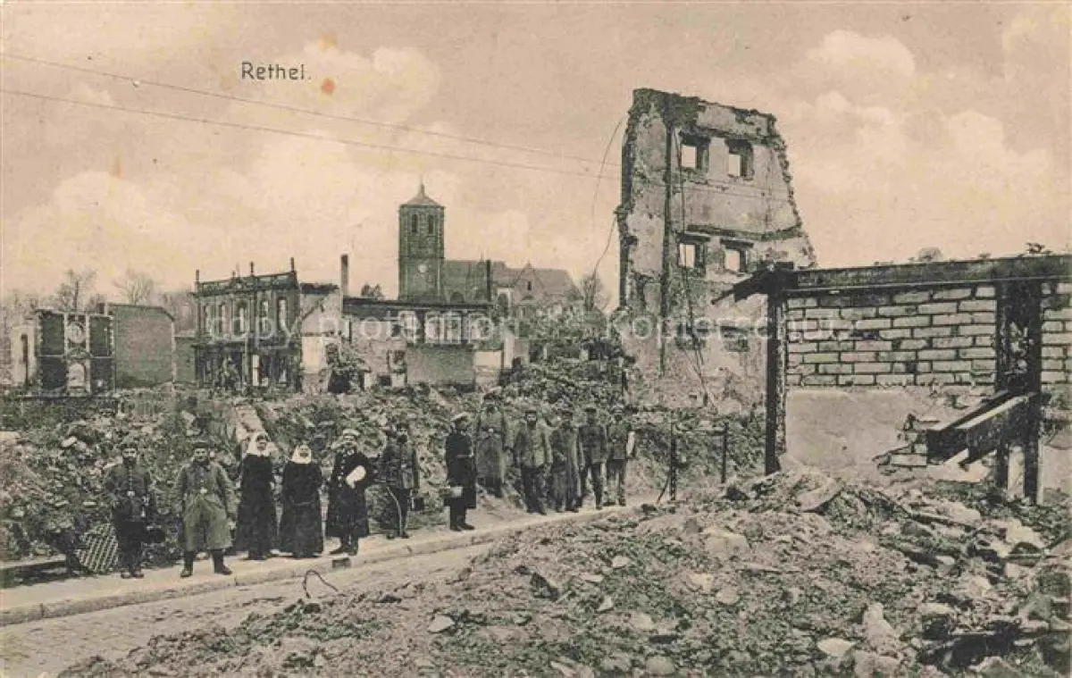 carte postale RETHEL 08 Ardennes Stadt in Ruinen Truemmer 1. Weltkrieg postalisch gelaufen Feldpostexpedition (Stempel) Erhaltung siehe scans [FriedD77]