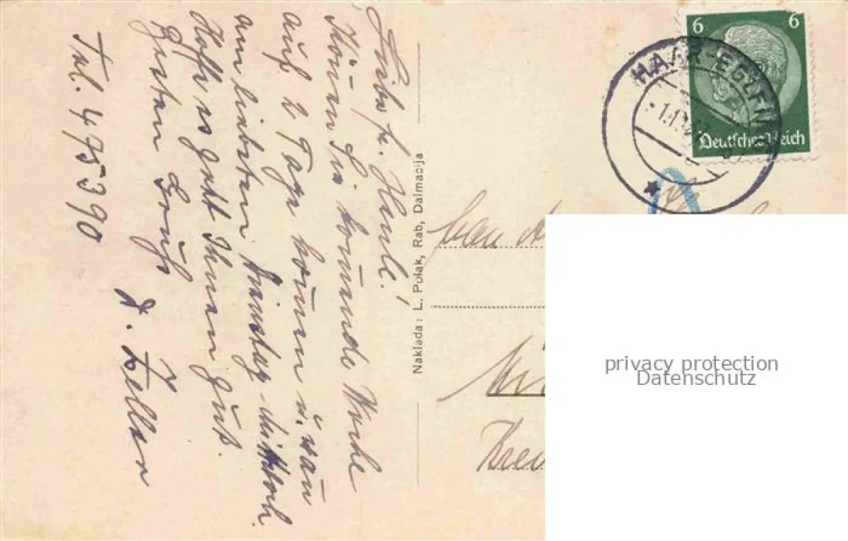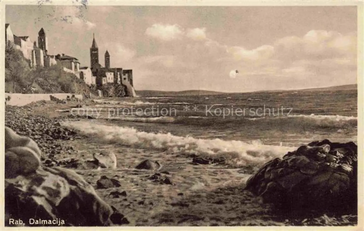 74153065 old postcard Rab Croatia Kuestenpanorama Strand postalisch gelaufen Erhaltung siehe scans [FriedD77] KatCode: 11260