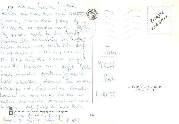 Rab_Croatia Fliegeraufnahme Rab_Croatia postalisch gelaufen nach 1965 Erhaltung siehe scans [KathaD81] Kathoren