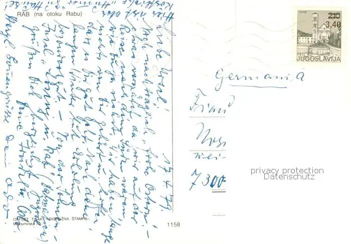 Rab_Croatia Fliegeraufnahme Rab_Croatia postalisch gelaufen 1979 Erhaltung siehe scans [FriedD77] Frierer