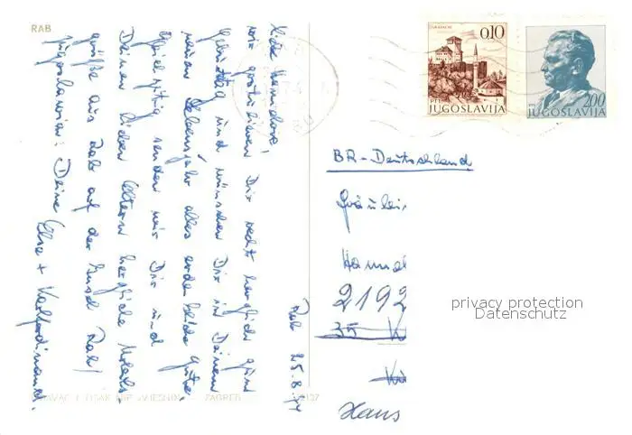 Rab_Croatia Fliegeraufnahme Rab_Croatia postalisch gelaufen 1974 Erhaltung siehe scans [FriedD77] Frierer