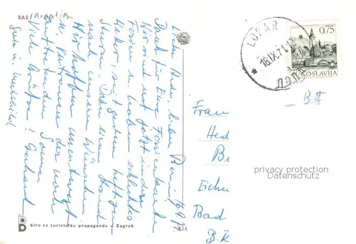 Rab_Croatia Fliegeraufnahme Rab_Croatia postalisch gelaufen 1971 Erhaltung siehe scans [WerneD78] WernPID7