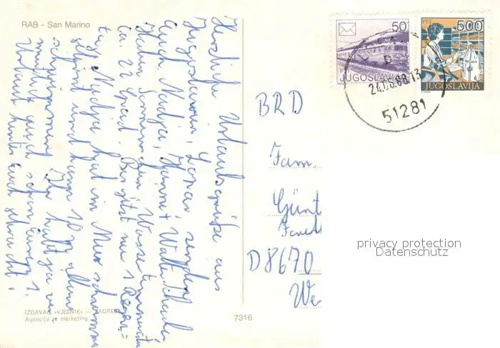 Rab_Croatia San Marino Rab_Croatia postalisch gelaufen 1988 Erhaltung siehe scans [WerneD78] WernPID7