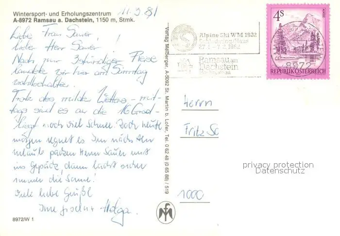 Ramsau_Dachstein_Steiermark Panorama Ramsau_Dachstein postalisch gelaufen 1981 Erhaltung siehe scans [WerneD78] WernPID7