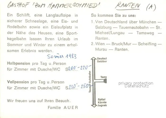 Ranten Gaststube Kegelbahn Reiter Ranten postalisch nicht gelaufen nach 1965 Werbekarte (keine Postkarte) Erhaltung siehe scans [WerneD78] Werbekarte (keine Postkarte) WernPID7