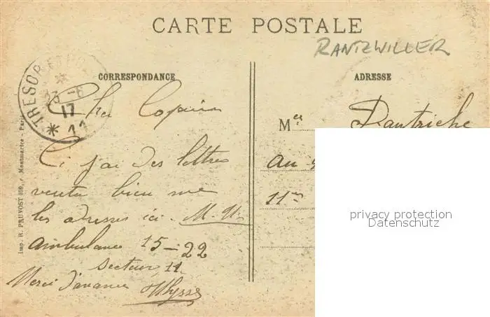 Rantzwiller La Tuilerie Rantzwiller postalisch gelaufen 1917 Feldpostkarte Erhaltung siehe scans [FriedD77] Feldpostkarte Frierer