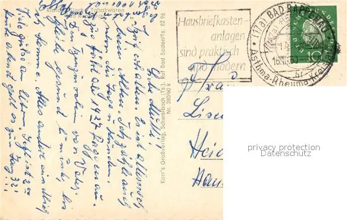 Rappenau_Bad Kategorie Alte Ansichtskarten Postkarten bx64166 Rappenau_Bad Inhalatorium Rappenau_Bad postalisch gelaufen 1960 Erhaltung siehe scans [KathaD81]