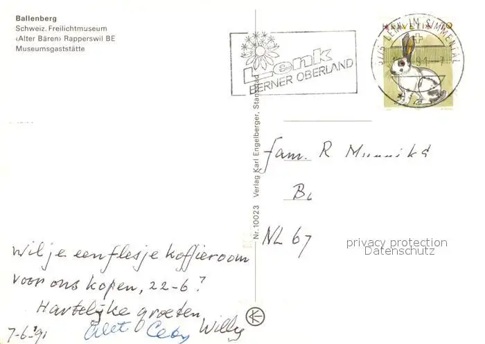 Rapperswil_BE Ballenberg Schweiz Freilichtmuseum Alter Baeren Museumsgaststaette Rapperswil BE postalisch gelaufen 1991 Erhaltung siehe scans [WerneD78] WernPID7