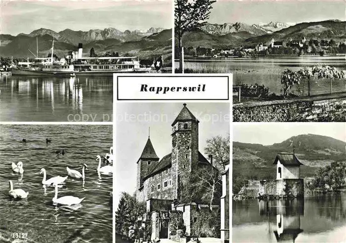 Rapperswil_BE Faehre Schwaene Schloss Rapperswil BE postalisch nicht gelaufen 1921-1965 Erhaltung siehe scans [WerneD78] WernPID7