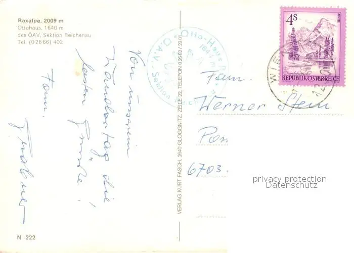 Raxalpe Ottohaus des oeAV Raxalpe postalisch gelaufen nach 1965 Erhaltung siehe scans [WerneD78] WernPID7
