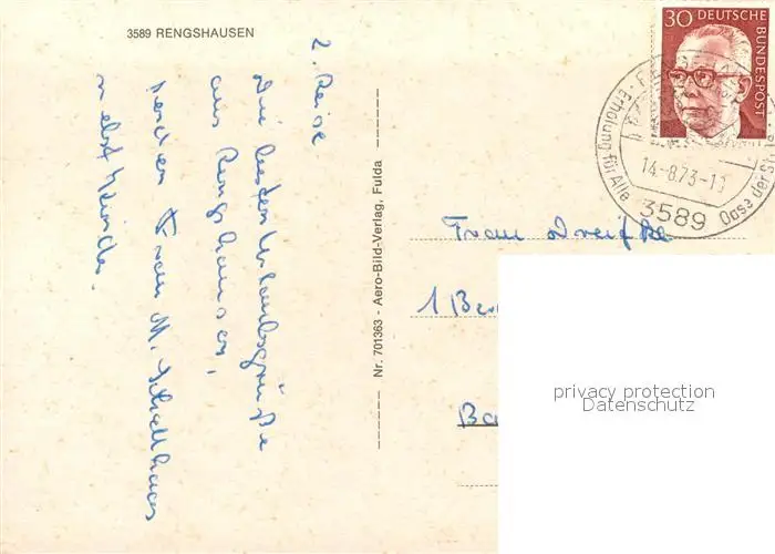 Rengshausen_Hessen Panorama Rengshausen Hessen postalisch gelaufen 1973 Erhaltung siehe scans [FriedD77] Frierer