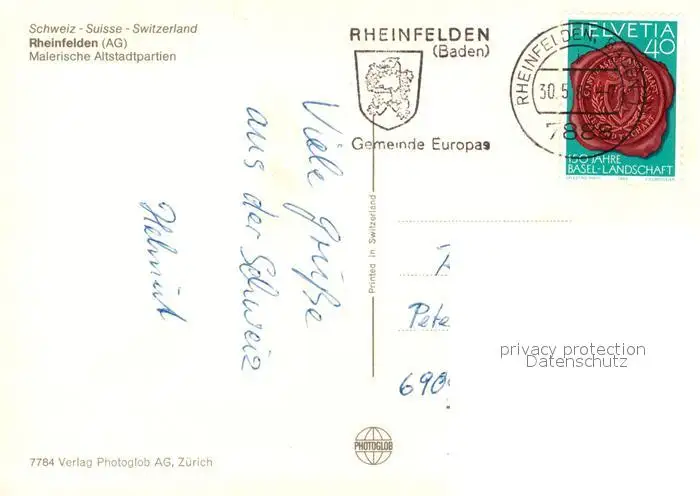 Rheinfelden_AG Altstadtpartien Rheinfelden AG postalisch gelaufen nach 1965 Erhaltung siehe scans [WerneD78] WernPID7