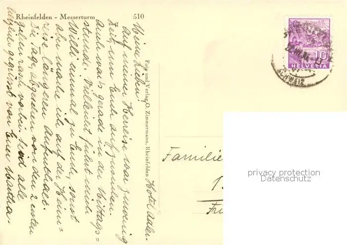 Rheinfelden_AG Messerturm Rheinfelden AG postalisch gelaufen 1936 Erhaltung siehe scans [WerneD78] WernPID7