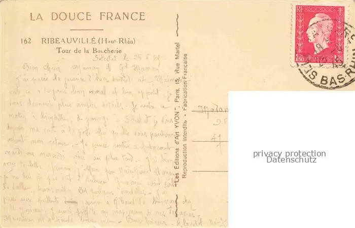 Ribeauville_Rappoltsweiler_68_Haut_Rhin Tour de la Boucherie postalisch gelaufen 1945 Erhaltung siehe scans [WerneD78] WernPID7