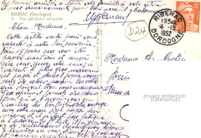 Riberac Vue generale aerienne Riberac postalisch gelaufen 1952 Erhaltung siehe scans [WerneD78] WernPID7