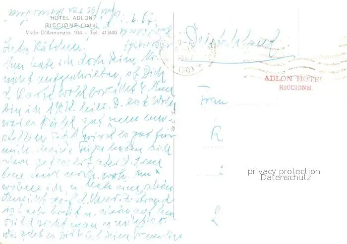 Riccione Hotel Adlon Strand Riccione postalisch gelaufen 1967 Erhaltung siehe scans [KathaD81] Kathoren
