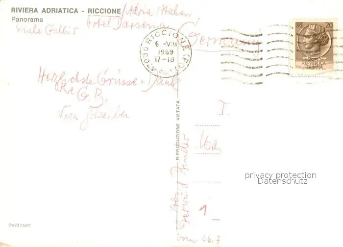 Riccione Panorama Riccione postalisch gelaufen 1969 Erhaltung siehe scans [WerneD78] WernPID7