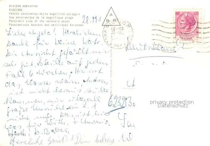 Riccione Strand Uferpromenade Riccione postalisch gelaufen 1991 Erhaltung siehe scans [KathaD81] Kathoren