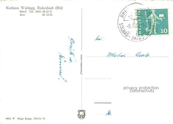 14058419 Rickenbach BL Kurhaus Waldegg postalisch gelaufen Erhaltung siehe scans [FriedD77] alte Postkarte Frie Katcode 11470040095726