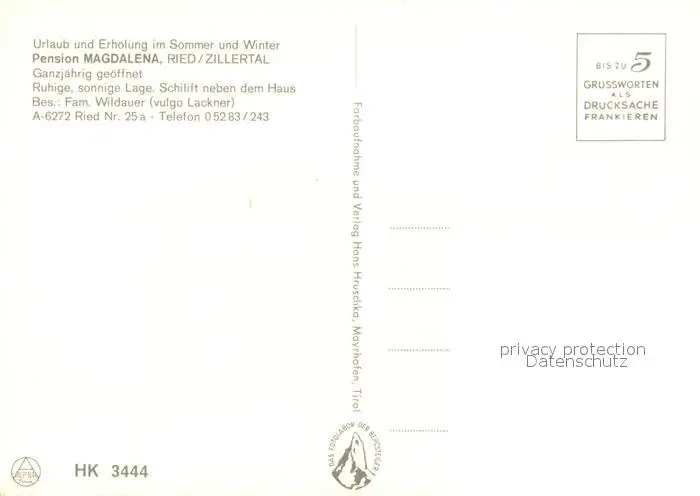 Ried_Zillertal Pension Magdalena Ried_Zillertal postalisch nicht gelaufen nach 1965 Erhaltung siehe scans [PaolaD17] PaolPID1