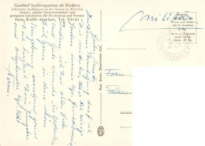 Riedern_GL Restaurant Staldengarten Riedern_GL postalisch nicht gelaufen 1921-1965 Erhaltung siehe scans [WerneD78] WernPID7