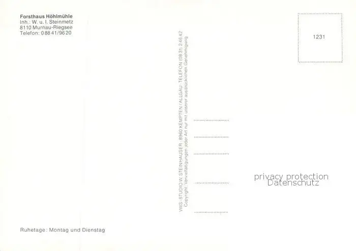 Riegsee Forsthaus Hoehlmuehle Gaststaette Riegsee postalisch nicht gelaufen nach 1965 Erhaltung siehe scans [FriedD77] Frierer