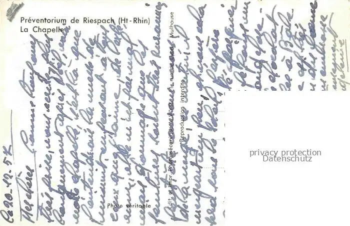 Riespach_Altkirch_68_Haut-Rhin Preventorium de Riespach La Chapelle postalisch nicht gelaufen 1957 Erhaltung siehe scans [WerneD78] WernPID7