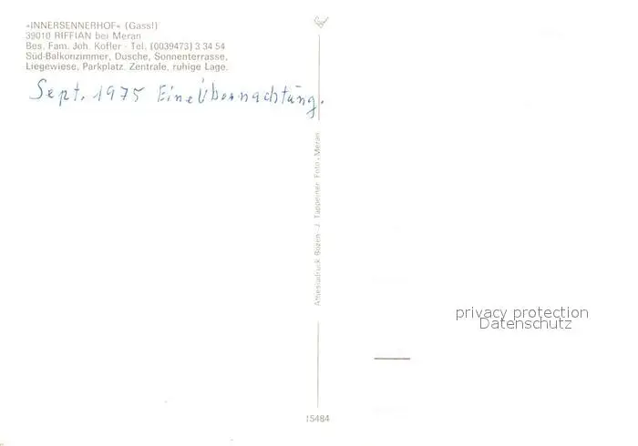 Riffian_Meran Gaestehaus Pension Innersennerhof Riffian Meran postalisch nicht gelaufen 1975 Erhaltung siehe scans [FriedD77] Frierer