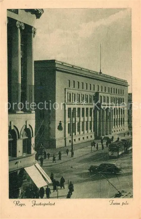 AK / Ansichtskarte Riga_Lettland Justizpalast Strassenbahn Riga_Lettland