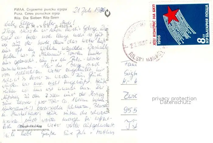 Rila Die Sieben Rila Seen Landschaftspanorama Berge Rila postalisch gelaufen 1986 Erhaltung siehe scans [FriedD77] Frierer