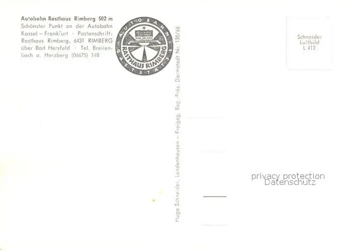 Rimberg_Bad_Hersfeld Autobahn Rasthaus Fliegeraufnahme Rimberg_Bad_Hersfeld postalisch nicht gelaufen nach 1965 Erhaltung siehe scans [FriedD77] Frierer