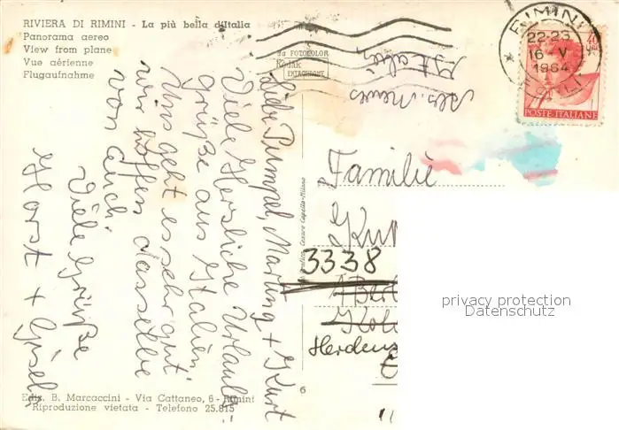 Rimini Fliegeraufnahme Rimini postalisch gelaufen 1964 Erhaltung siehe scans [WerneD78] WernPID7