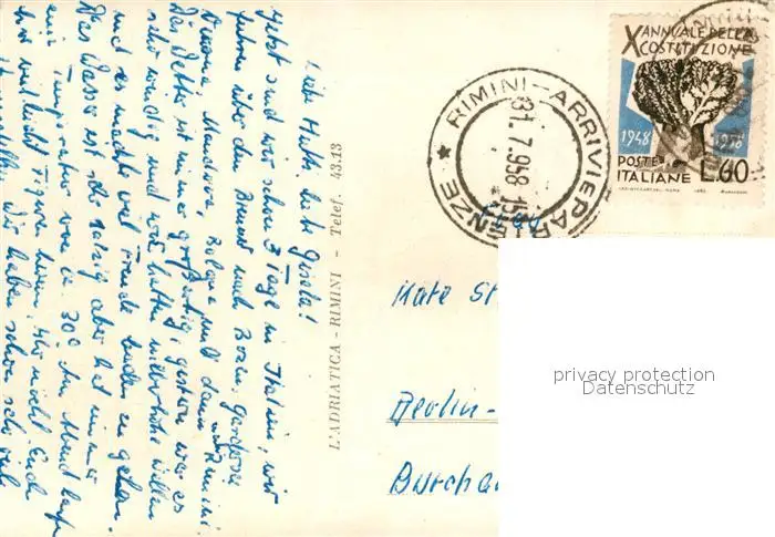Rimini Grand Hotel Strand Rimini postalisch gelaufen 1958 Erhaltung siehe scans [FriedD77] Frierer