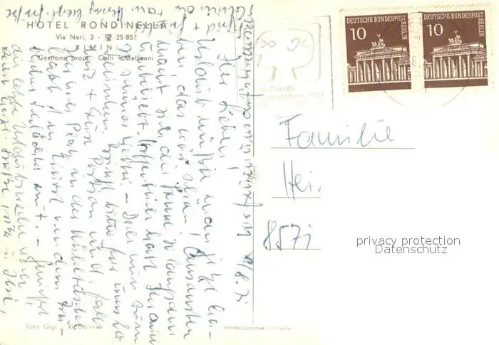 Rimini Hotel Rondinella Rimini postalisch gelaufen 1971 Erhaltung siehe scans [WerneD78] WernPID7