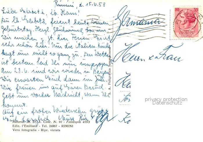 Rimini La spiaggia dall aero Rimini postalisch gelaufen 1958 Erhaltung siehe scans [WerneD78] WernPID7