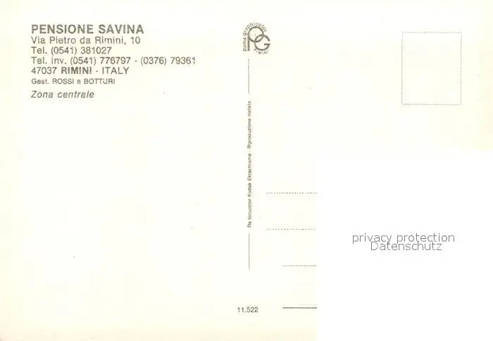 Rimini Pensione Savina Rimini postalisch nicht gelaufen nach 1965 Erhaltung siehe scans [NatalD47] NataID47