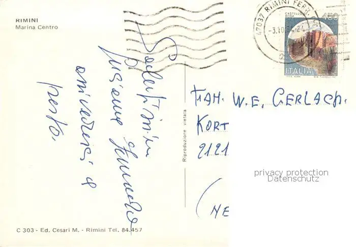 Rimini_IT Marina Centro postalisch gelaufen 1984 Erhaltung siehe scans [FriedD77] Frierer