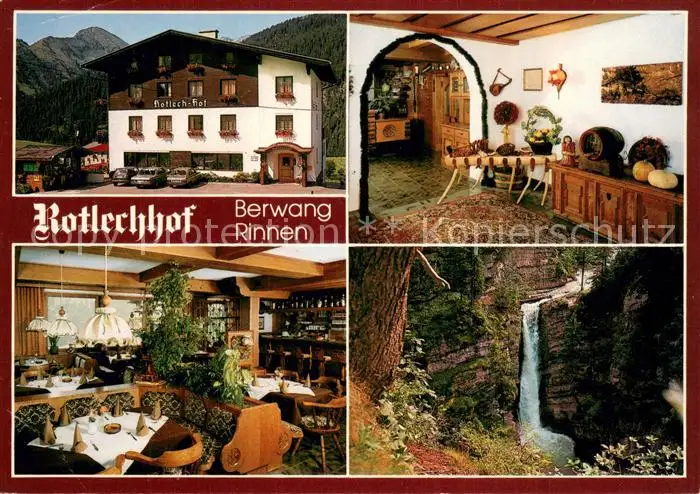 Rinnen_Tirol Gasthof Rotlechhof Bergwang-Rinnen Wasserfall Rinnen Tirol postalisch gelaufen 1986 Erhaltung siehe scans [LiesaD40] LiesID40