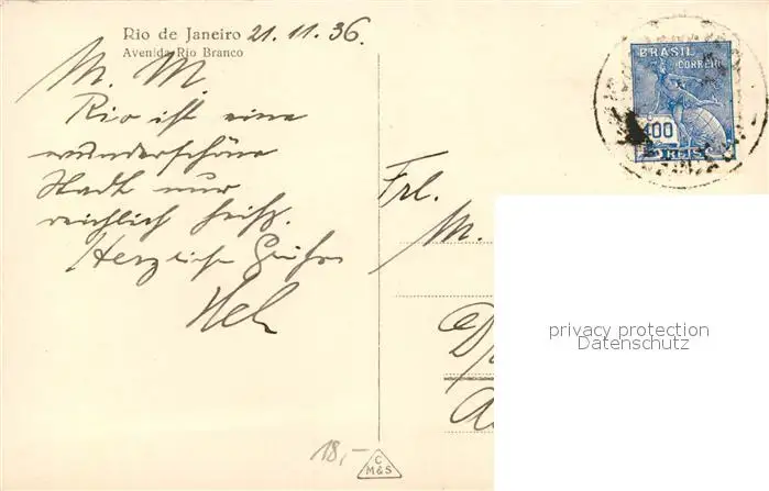 Rio_de_Janeiro Avenue de Rio Branco Rio_de_Janeiro postalisch gelaufen 1936 Erhaltung siehe scans [KathaD81] Kathoren
